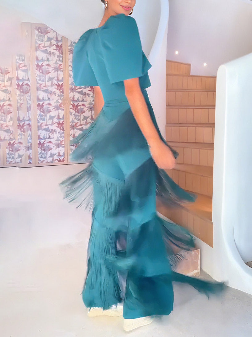 Elegant High-Waist Layered Fringe Wide-Leg Pants